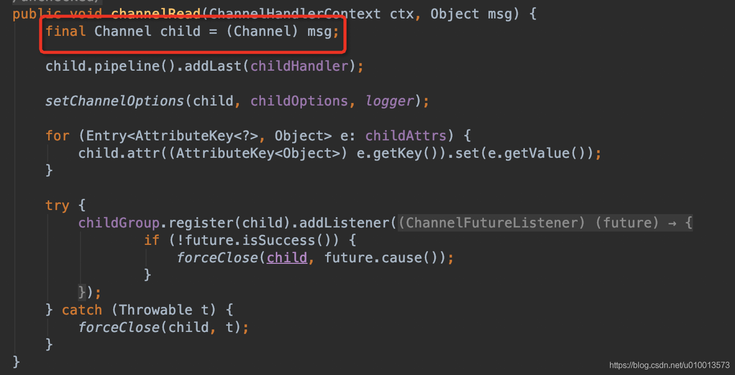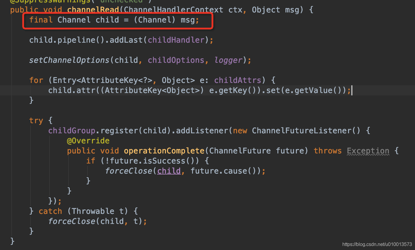 - 故可以在ServerBootstrapAcceptor的channelRead中将msg强制转换为Channel类型。