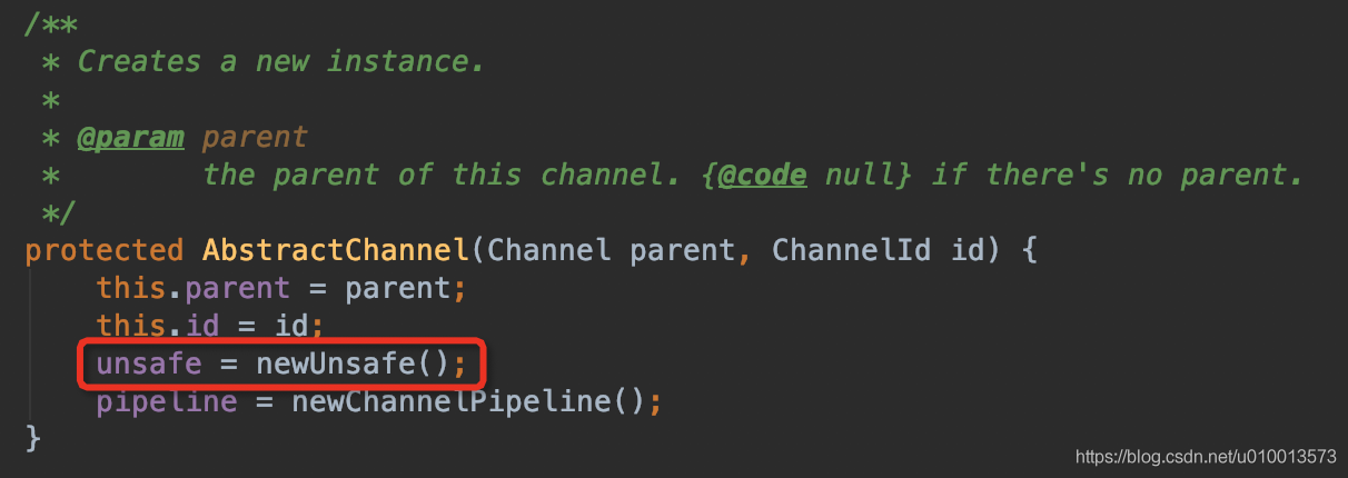 (2)通过new NioSocketChannel,从Java NIO的SocketChannel创建Netty的SocketChannel实例,其中NioSocketChannel为SocketChannel的一个实现类,故在这里创建了Netty的SocketChannel对象,然后在pipeline中的流通的数据Object msg,就是SocketChannel类型。