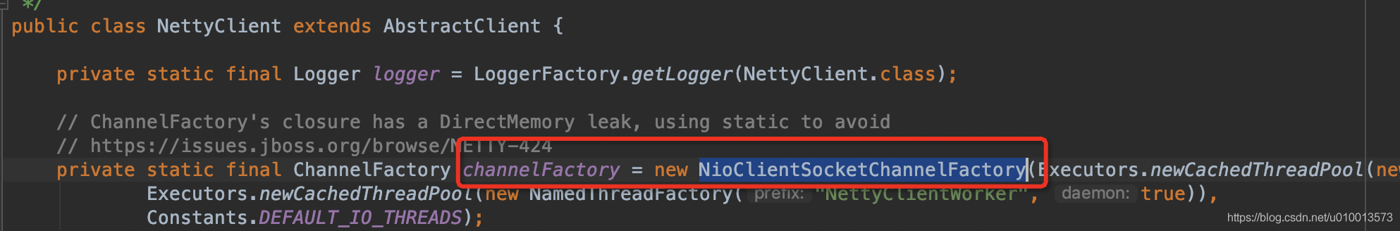 使用NioSocketChannel作为客户端Channel,即使用NIO;