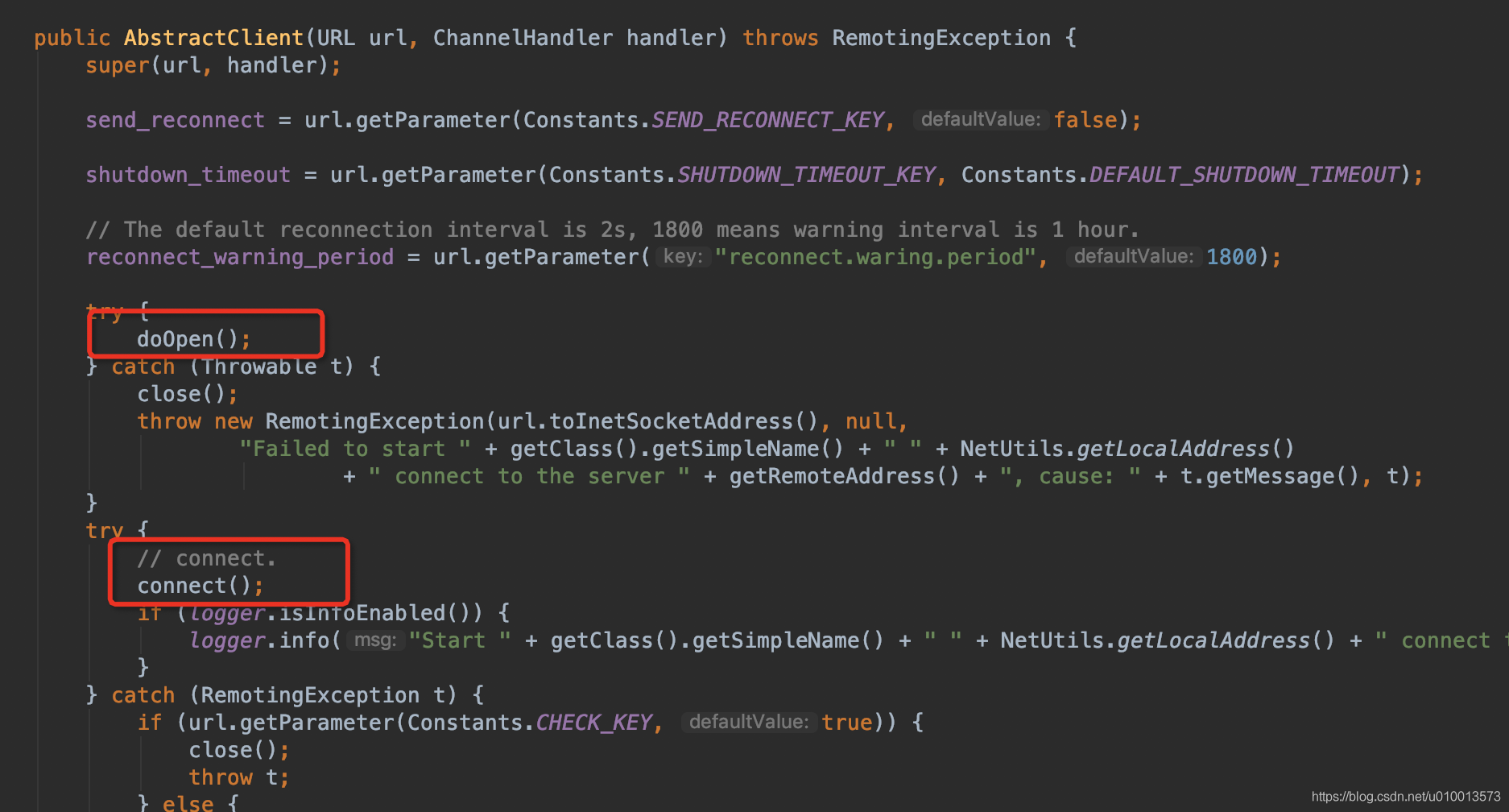 - AbstractClient:ExchangerClient接口的抽象实现类,定义模板方法