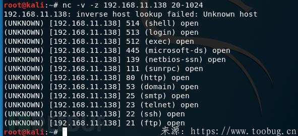 格式:nc -v -z Target_IP Target_Port_Start - Target_Port_End