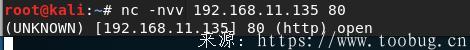 格式:nc -vv(-v) -z -w time Target_IP Target_Port_Start-Targert_Port_End