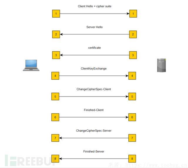 1 客户端向服务器发送一个Client Hello包,在Client Hello包中会包含Cipher suite、客户端支持的加密算法、客户端随机生成的32字节的随机数,以及一个Session ID