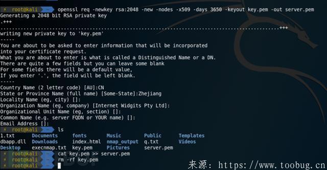 openssl req -newkey rsa:2048 -new -nodes -x509 -days 3650 -keyout key.pem -out server.pemcat key.pem >> server.pemrm -rf key.pem