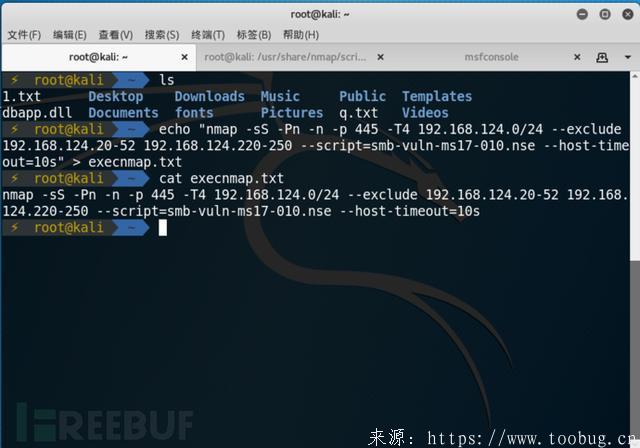 在例子中我保存在execnmap.txt中