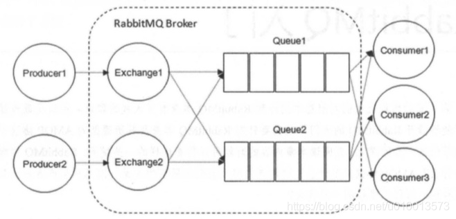 在AMQP协议中,消息队列服务器称为Broker,在Broker中接收生产者的消息,将该消息放入对应的队列中,然后将消息分发给消费这个队列消息的消费者。所以Broker内部通常包含数据交换器Exchanger,队列Queue两大组件和需要实现这两大组件之间的绑定。