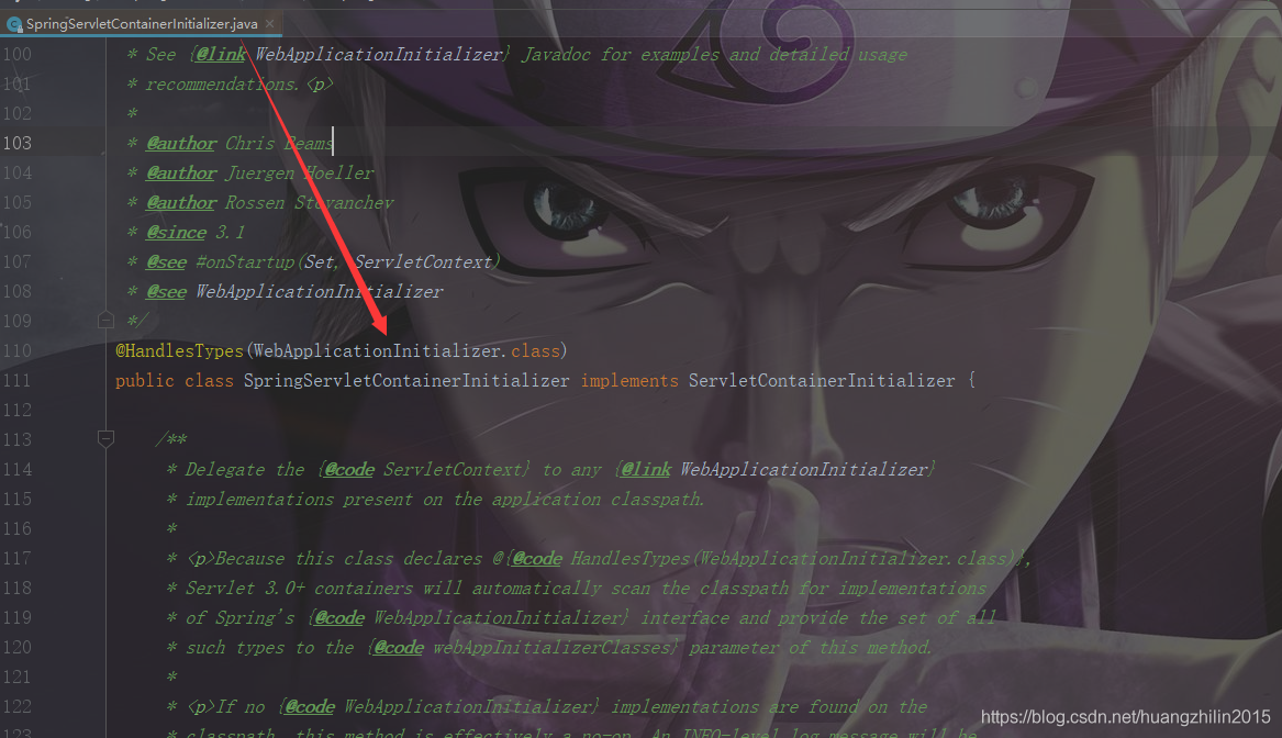 而SpringServletContainerInitializer所感兴趣的类为:WebApplicationInitializer.class: