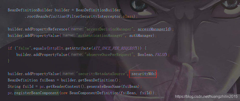 public class FilterInvocationSecurityMetadataSourceParser implements BeanDefinitionParser {