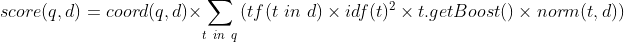 Arrays.fill(matching, 0L); 就像这样一直迭代处理所有文档,而到现在我们整个评分公式的计算各个部分已经全部实现了,到这里计算的得分就是我们最终的得分了: