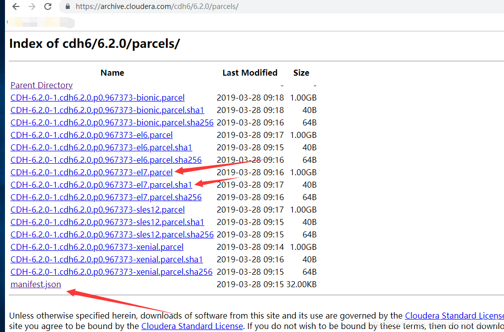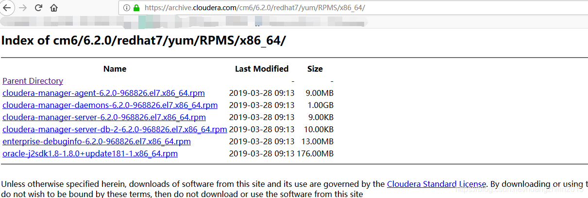 确定好自己的系统和所需版本之后,到https://archive.cloudera.com下载对应的rpm包,博主当前下载redhat 7下的6.2.0版本:
