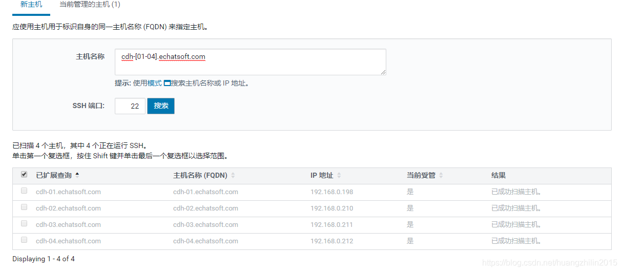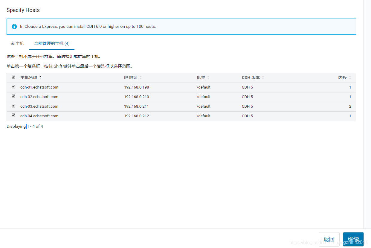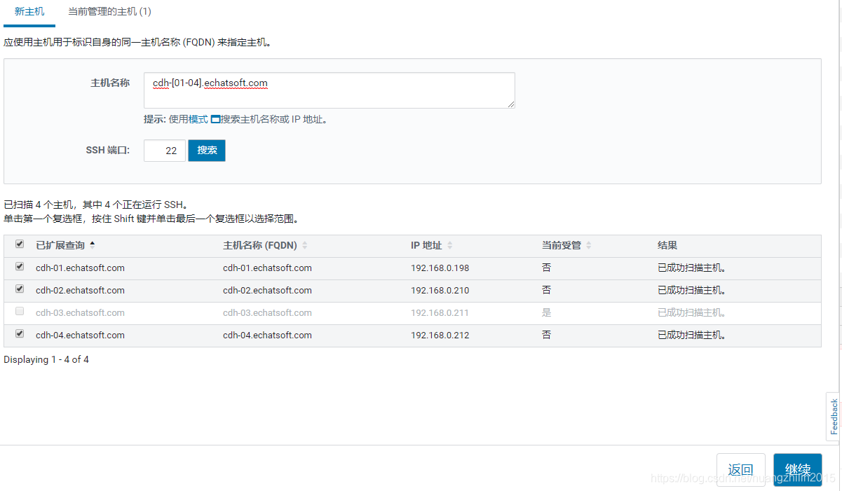 | 192.168.0.212 | cdh-04.echatsoft.com | 192.168.0.198 cdh-01.echatsoft.com cdh-01 192.168.0.210 cdh-02.echatsoft.com cdh-02 192.168.0.211 cdh-03.echatsoft.com cdh-03 192.168.0.212 cdh-04.echatsoft.com cdh-04 |