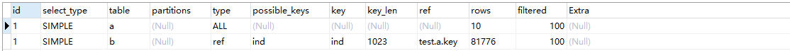 id序号相同,上面的先执行,所以这里a表是驱动表,b表是被驱动表。这个是查询优化器选择的,我们也可以使用straight_join来强制指定驱动表(straight_join左边的为驱动表):