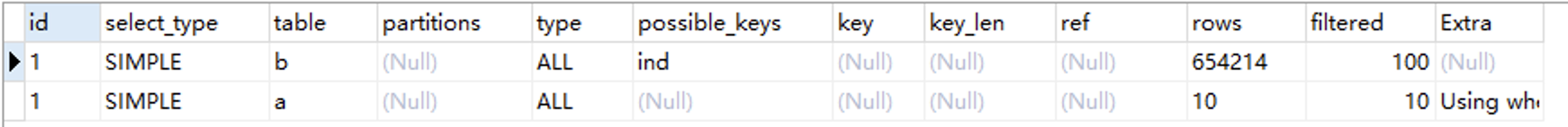 比如以下sql(a和b的表结构很简单,这里就不贴了):