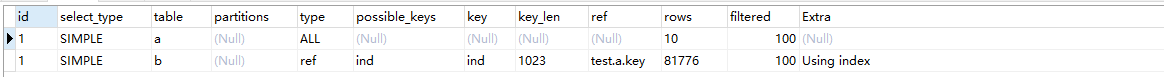 可以看到驱动表变成了b表,不过straight_join只适用于inner join的情况,因为left(right)join已经明确了驱动表:left join左边的表是驱动表,right join右边的表是驱动表。