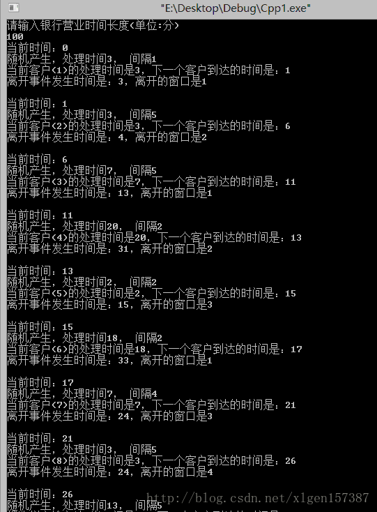 当前客户(29)的处理时间是8,下一个客户到达的时间是:86
