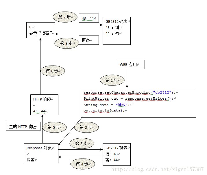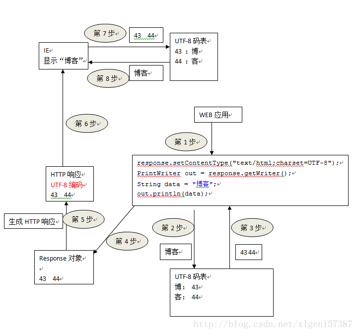 我们这里先来说明一下错误的原因,下图是显示乱码的流程图:
