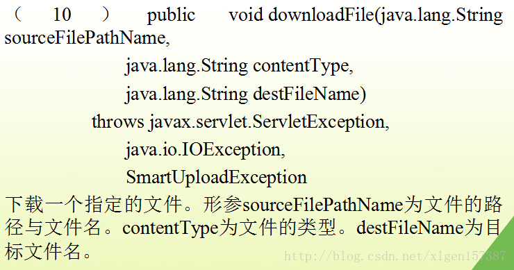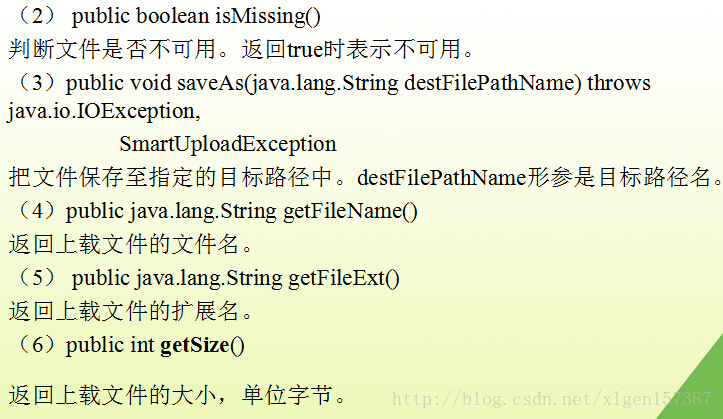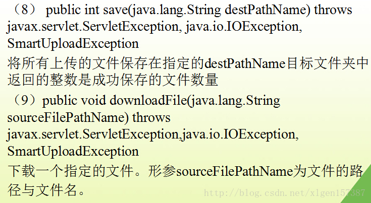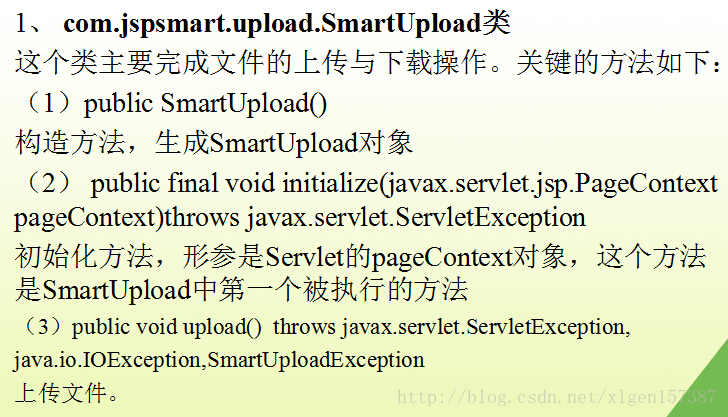 (1)JspSmartUpload是一个免费的上传与下载文件的JavaBean,比较适合小文件的上传与下载。