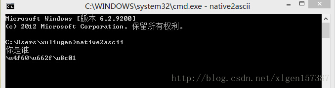 用法:在CMD里打入”native2ascii”后回车,接着再输入中文,就可以显示出ascii码。