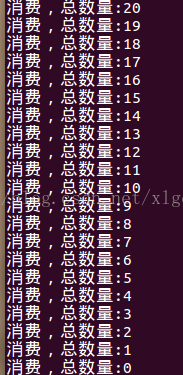 printf("消费,总数量:%d\n",buffer_has_item); /*打印信息*/