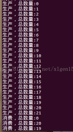 printf("生产,总数量:%d\n",buffer_has_item); /*打印信息*/