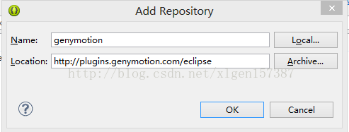 (5)然后打开help--install new software,点击Add 地址输入:http://plugins.genymotion.com/eclipse