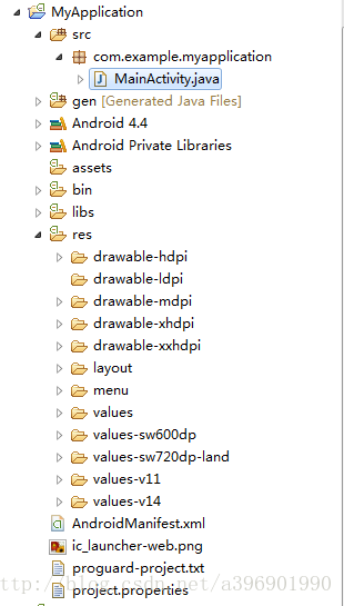 下面两个图是Android Studio和Eclipse的目录结构,习惯了Eclipse的话去适应Android Studio应该需要一些时间。Android Studio中多了一个Module的概念。