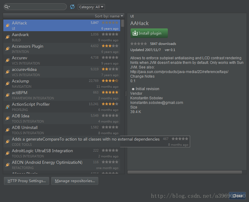我最讨厌Eclipse的一个地方就是他的插件系统,下载和管理极其不方便。但在Android Studio中可以像Apple store那样浏览所有的插件,直接搜索,下载和管理它,超级赞。