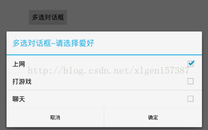 android:text="多选对话框" />