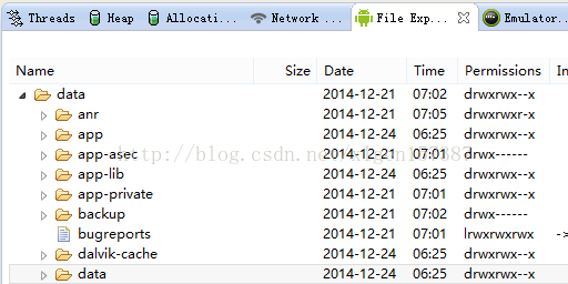 (3)然后我们在看模拟器中的文件目录信息,我们在安装的应用,都会在安卓机器上的data----data---具体的安装文件夹,例如我的是:com.example.test