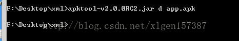 在地址栏中输入cmd,回车--命令apktool-v2.0.RC2.jar d lashow.apk