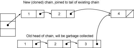for (HashEntry<K,V> p = first; p != e; p = p.next)