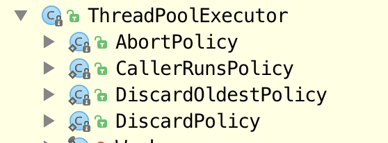 ThreadPoolExecutor.AbortPolicy:丢弃任务并抛出RejectedExecutionException异常,(中止)它是默认的策略。