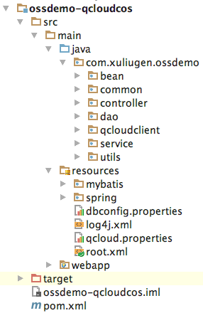这个和腾讯云COS的项目结构一样的,不多做解释,使用到的是: