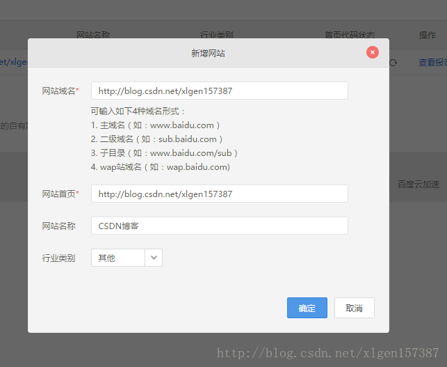 网站域名,就是你博客主页地址,例如我的就是:http://blog.csdn.net/xlgen157387