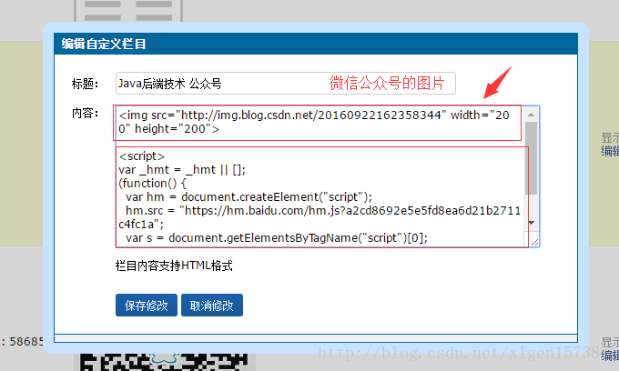上边的是图片地址,可以显示公众号的图片,下边的就是百度统计的具体代码。