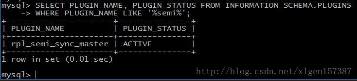 mysql>SELECT PLUGIN_NAME, PLUGIN_STATUS FROM INFORMATION_SCHEMA.PLUGINS WHERE PLUGIN_NAME LIKE '%semi%'; (6)参数说明: