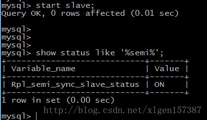 mysql>INSTALL PLUGIN rpl_semi_sync_slave SONAME 'semisync_slave.so'; (2)设置Slave上开启半同步复制: