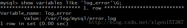 mysql> show variables like 'log_error'\G; 查看如下: