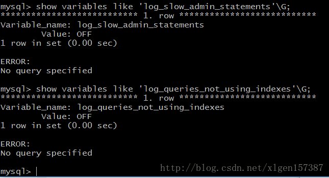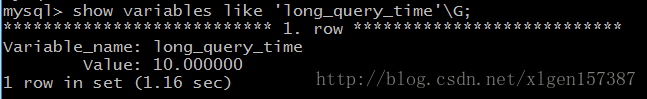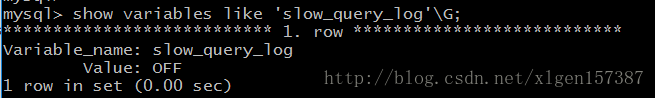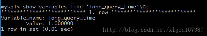 mysql> show variables like 'long_query_time'\G; #是否开启