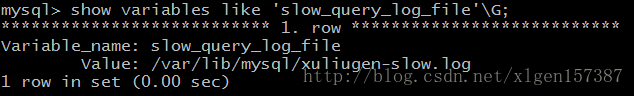 mysql> show variables like 'log_output'\G; 可以得知,默认的存储方式是FILE即,存放在/var/lib/mysql/xuliugen-slow.log 下。