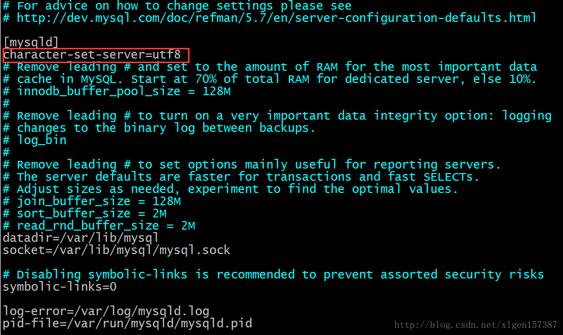 default-character-set=utf8 默认情况下,我只修改了[mysqld],修改后的/etc/my.cnf内容如下: