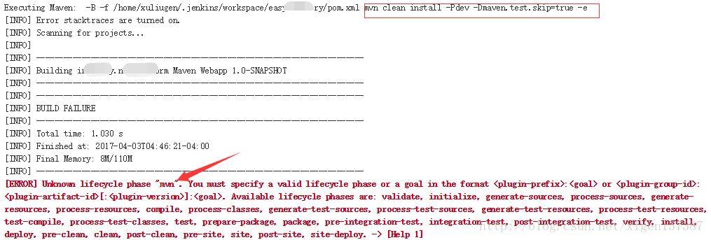[ERROR] Unknown lifecycle phase "mvn". You must specify a valid lifecycle phase or a goal in the format <plugin-prefix>:<goal> or <plugin-group-id>:<plugin-artifact-id>[:<plugin-version>]:<goal>. Available lifecycle phases are: validate, initialize, generate-sources, process-sources, generate-resources, process-resources, compile, process-classes, generate-test-sources, process-test-sources, generate-test-resources, process-test-resources, test-compile, process-test-classes, test, prepare-package, package, pre-integration-test, integration-test, post-integration-test, verify, install, deploy, pre-clean, clean, post-clean, pre-site, site, post-site, site-deploy. -> [Help 1] 因此,使用正确的参数之后就可以正确的编译了~