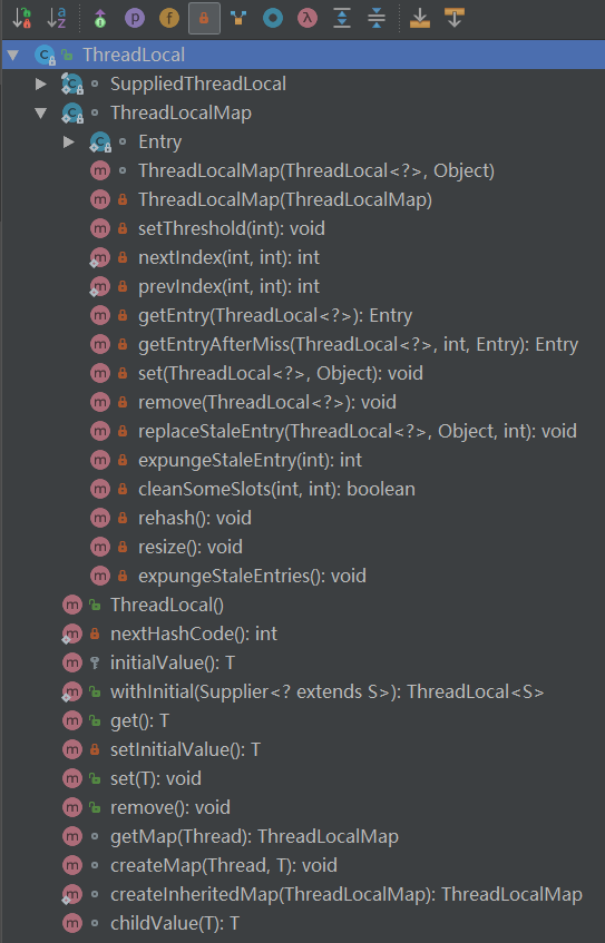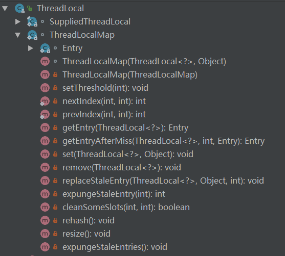ThreadLocalMap为ThreadLocal的静态内部类,如下图所示: