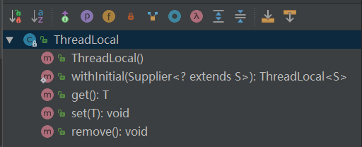 ThreadLocal公有的方法就四个,分别为:get、set、remove、intiValue: