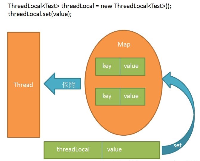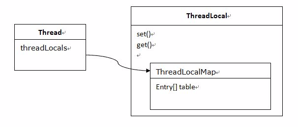 } 可以看到,set(T value)方法为每个Thread对象都创建了一个ThreadLocalMap,并且将value放入ThreadLocalMap中,ThreadLocalMap作为Thread对象的成员变量保存。那么可以用下图来表示ThreadLocal在存储value时的关系。