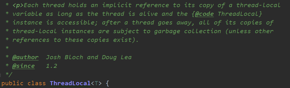 ThreadLocal很容易让人望文生义,想当然地认为是一个“本地线程”。其实,ThreadLocal并不是一个Thread,而是Thread的一个局部变量,也许把它命名为ThreadLocalVariable更容易让人理解一些。