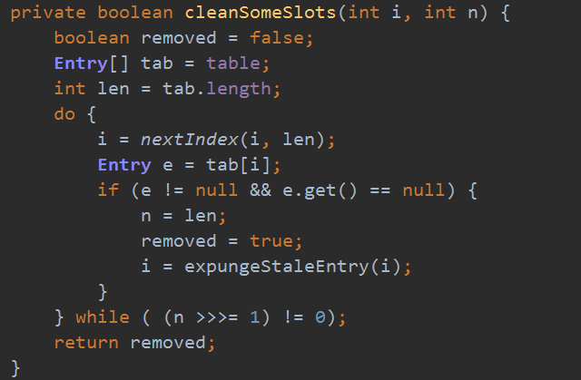 if (!cleanSomeSlots(i, sz) && sz >= threshold)