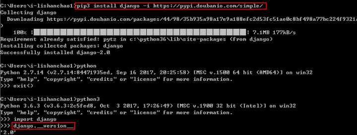 如图所示,已成功安装Django。